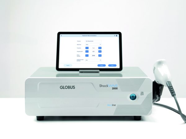 Globus ShockWAVE 2000 Med Line este un aparat profesional de terapie cu unde de șoc radiale (RSWT), conceput pentru tratamentul durerii musculo-scheletice și al afecțiunilor miofasciale.